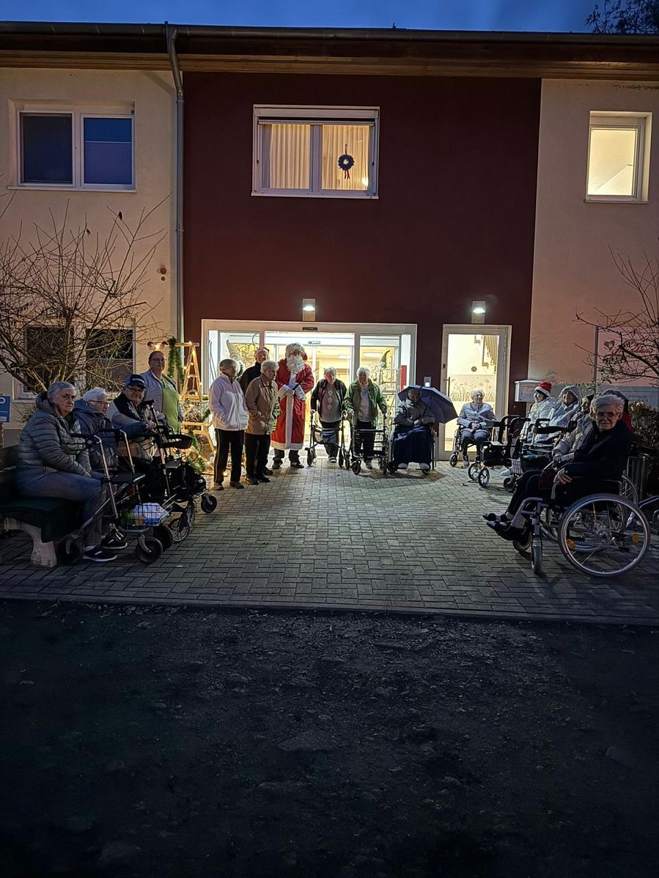 Ein besonders herzlicher Moment erwartete den Korso am Landhaus am Schlosspark. Viele Bewohnerinnen und Bewohner hatten sich vor dem Eingang versammelt und freuten sich sichtbar über den vorweihnachtlichen Besuch. Diese Begegnung zeigte, wie sehr die Aktion Menschen jeden Alters verbindet.