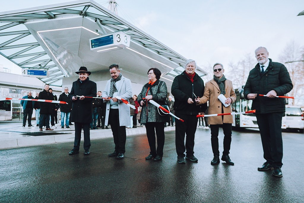 Nach mehrjähriger Planungs- und Bauzeit präsentiert sich der ZOB als moderne, barrierefreie Mobilitätsdrehscheibe, die den Pendler-, Schüler- und Regionalverkehr deutlich aufwertet. Am Donnerstagvormittag wurde die neue Anlage im Beisein zahlreicher Projektpartner, Planungsbüros, Vertreter der Stadt und des Landkreises sowie der beteiligten Unternehmen offiziell vorgestellt.