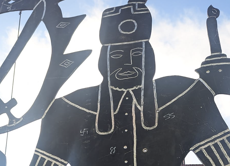 Stadtverwaltung Nordhausen am Schwibbogen auf dem Nikolaiplatz Hakenkreuz und SS-Schmierereien entdeckt. Diese wurden in das Metall des Schwibbogens eingeritzt...
