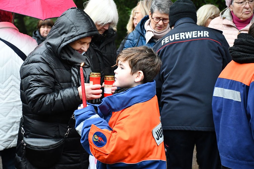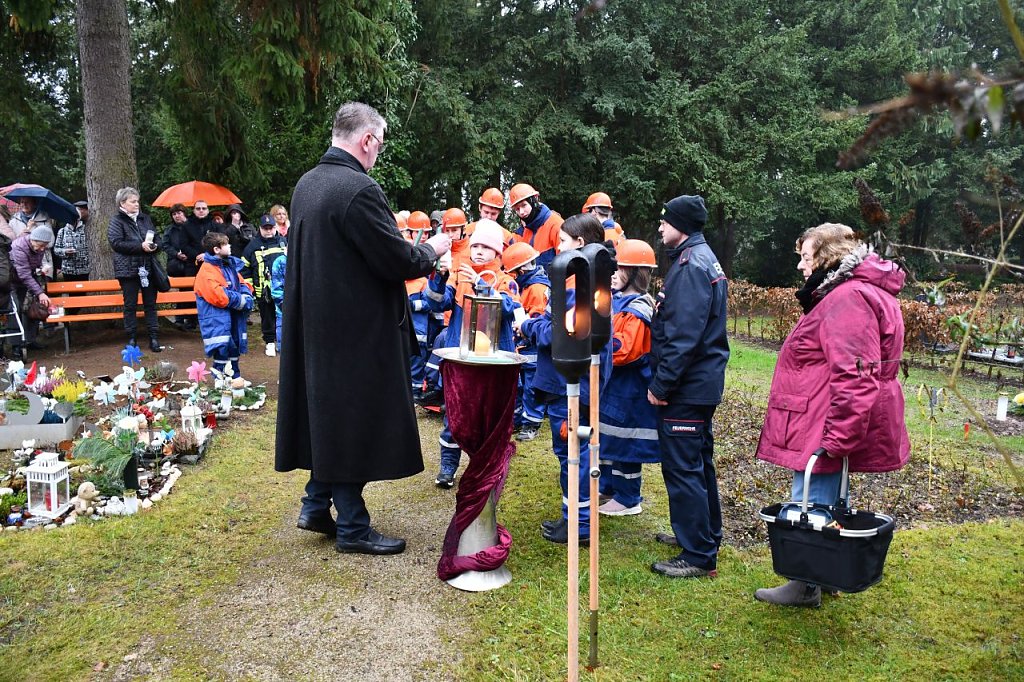 Übergeben durch die Jugendfeuerwehr Nordhausen Mitte fand das Licht seinen Weg zum Schmetterlingsfeld, um den Schmetterlingskindern zu gedenken. Nach einer kleinen Rede und ein paar nachdenklichen Worten von Herrn P. Tobias Titulaer