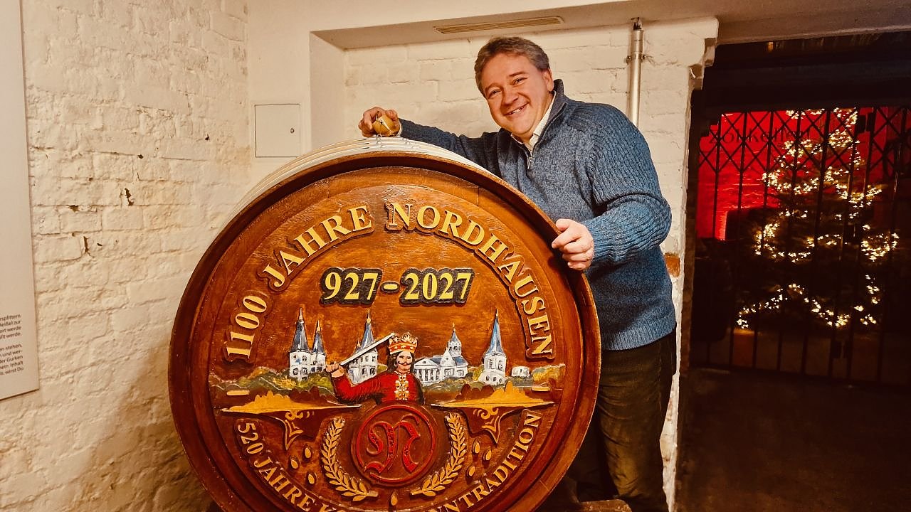 Die Echte Nordhäuser Traditionsbrennerei feiert im kommenden Jahr zwei mal Jubiläum und auch für 2027 hat Museumsleiter Thomas Müller schon vorsorgen lassen (Foto: agl)
