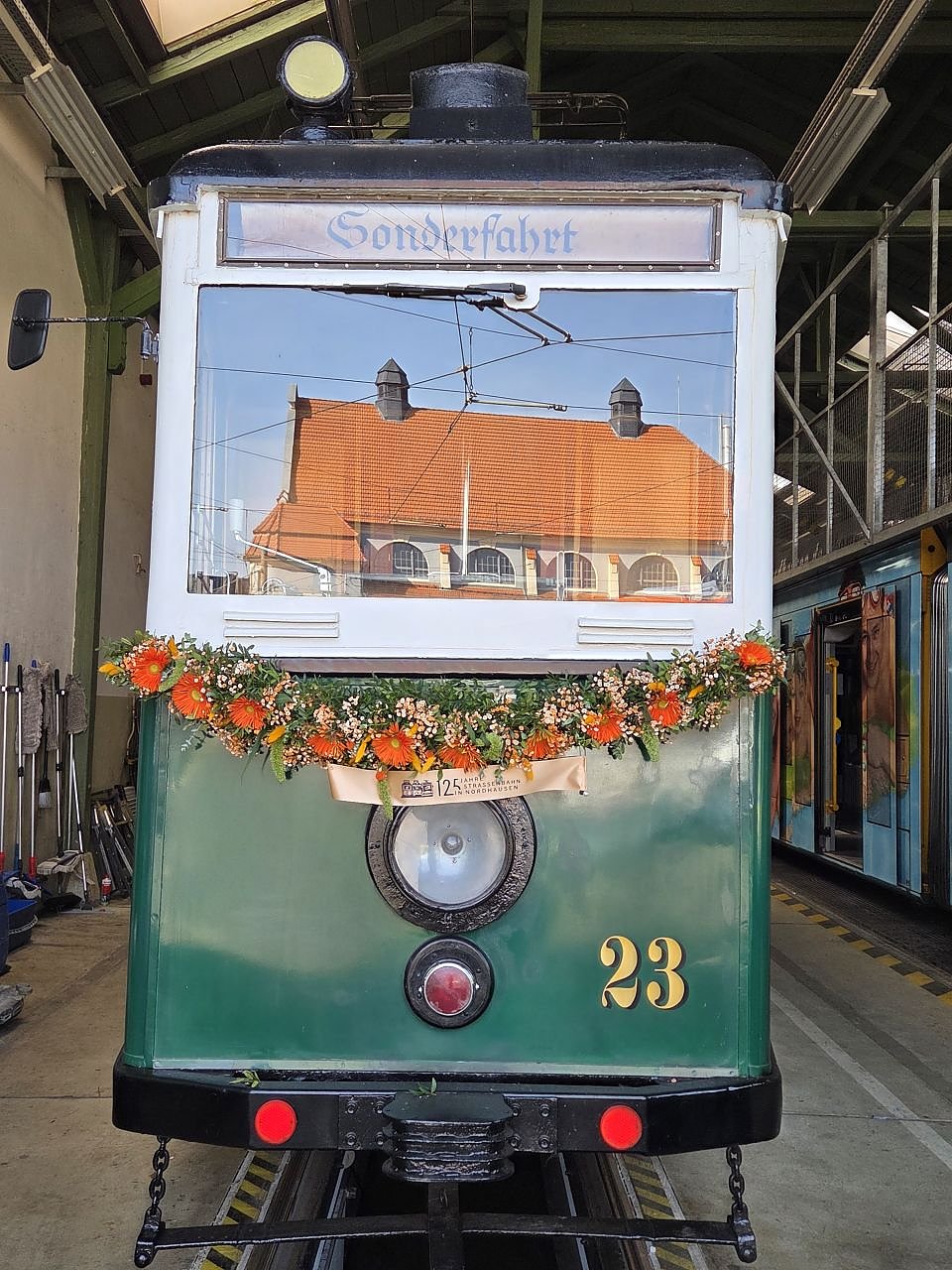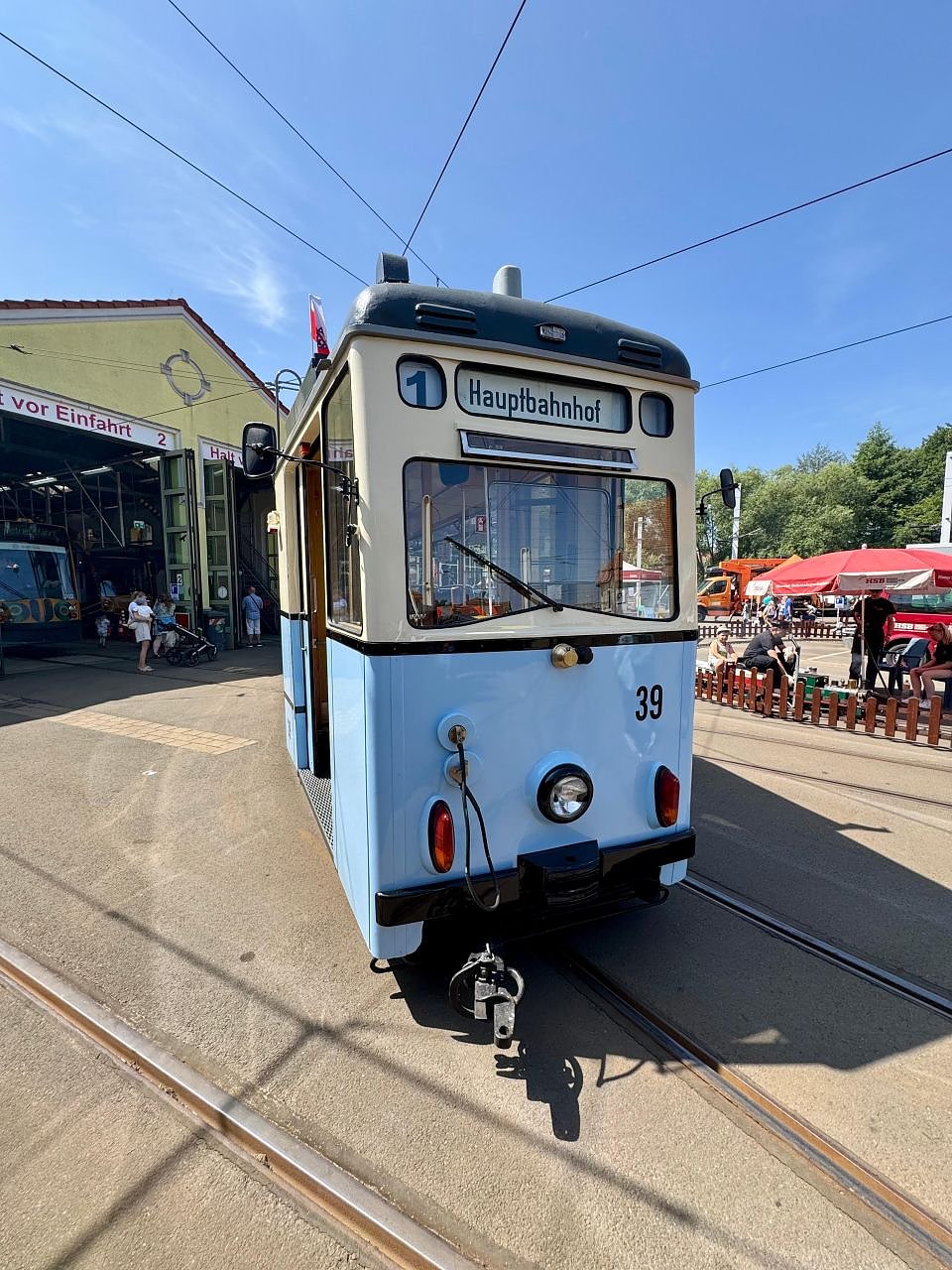 Eine Woche später, am 21. Juni 2025, fand ein Tag der offenen Tür im Straßenbahndepot statt. Dort gab es ein vielfältiges Angebot für Kinder und Erwachsene. Für die Kleinen wurde die Hüpfburg des Kreissportbundes und eine Kindereisenbahn von der Harzer Schmalspurbahnen GmbH bereitgestellt. Auch ein Steiger zum Entenwerfen und Wasserspiele in Zusammenarbeit mit der Freiwilligen Feuerwehr Sundhausen begeisterten die Kinder. Interessierte konnten Führerstandmitfahrten mit dem Erwerb eines Ehren-Straßenbahnführerscheines verbinden. Am Nachmittag sorgten Markus Rein (Keyboard) und Dietmar Ball (Trompete) für großartige Livemusik. Als weiteres Highlight waren an diesem Tag historische Straßenbahnen aus Nordhausen und ein Gastwagen aus Gotha für Fotoimpressionen im Stadtgebiet unterwegs.