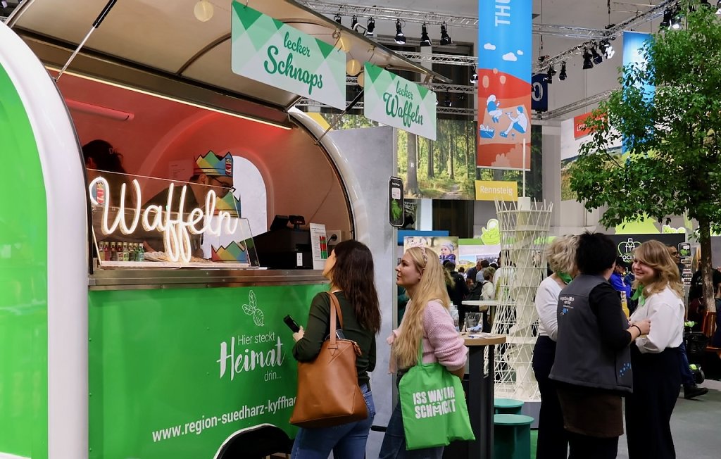 Der Tourismusverband ist erneut mit seinem grünen Hofladen vertreten. Neben touristischen Informationen gibt es frisch gebackene Waffeln sowie Schnaps aus der Nordhäuser Traditionsbrennereizu probieren.