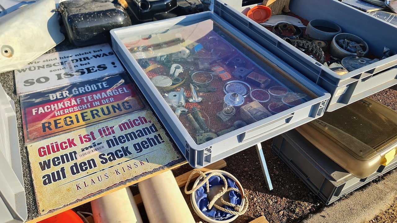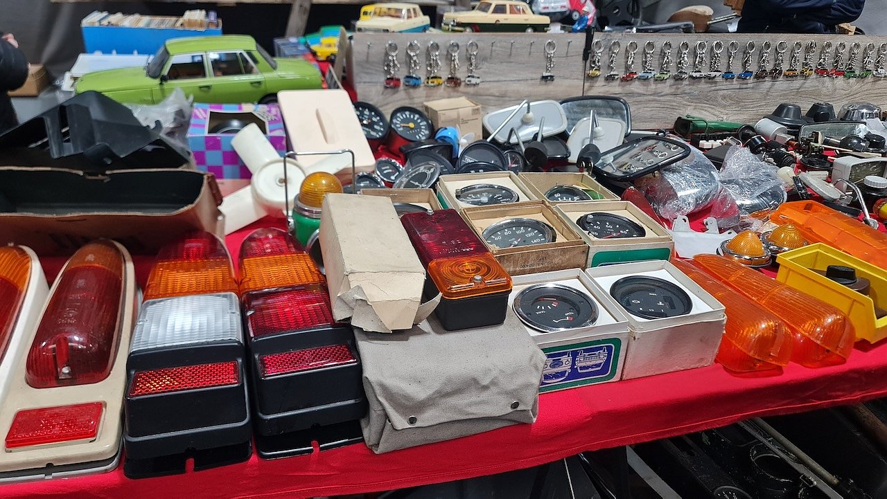 Begleitet wurde die Messe wieder von einem Teilemarkt, auf dem die Sammler und Schrauber nach gesuchten Originalersatzteilen oder wertvollem Zubehör stöbern konnten. An rund 300 Verkaufsständen wurden hunderttausend Raritäten angeboten. Nicht nur rostige Raritäten, sondern auch fabrikneue Produkte. Motoren für Trabant, Opel Kadett, Wartburg und unterschiedliche Motorräder, die schon lange nicht mehr hergestellt werden zum Beispiel.