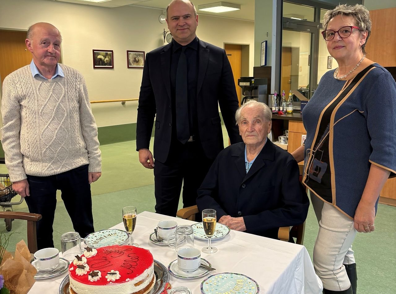 Kurt Seiffart, geboren am 26. Januar 1924, hat mehr als ein Jahrhundert deutscher Geschichte miterlebt. Bis heute genießt der Jubilar kleine Alltagsfreuden. Besonders Schokolade hat es ihm angetan. Er geht regelmäßig mit seinem Rollator ins Café am Schwanenteich gegenüber und gönnt sich dort ein Stück Kuchen, berichtet Hertwig.