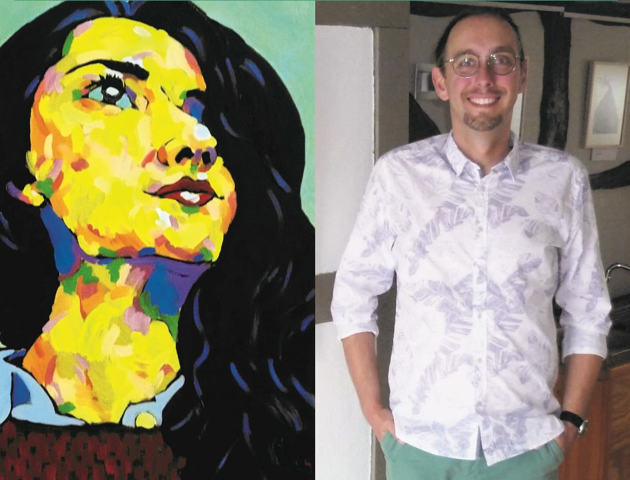 Dabei war und ist es ihm wichtig, die Portraitierten klar und deutlich auf den Bildträger zu bringen. Genaue, naturgetreue Proportionen, jedoch statt zart verblendeter Rosa-Töne kräftige Farbkontraste in Gelb und Violett, Rot und Grün mit expressionistischen Pinselstrichen. Nachdenkliche Augen, verträumte Blicke, verschmitzte Lächeln.