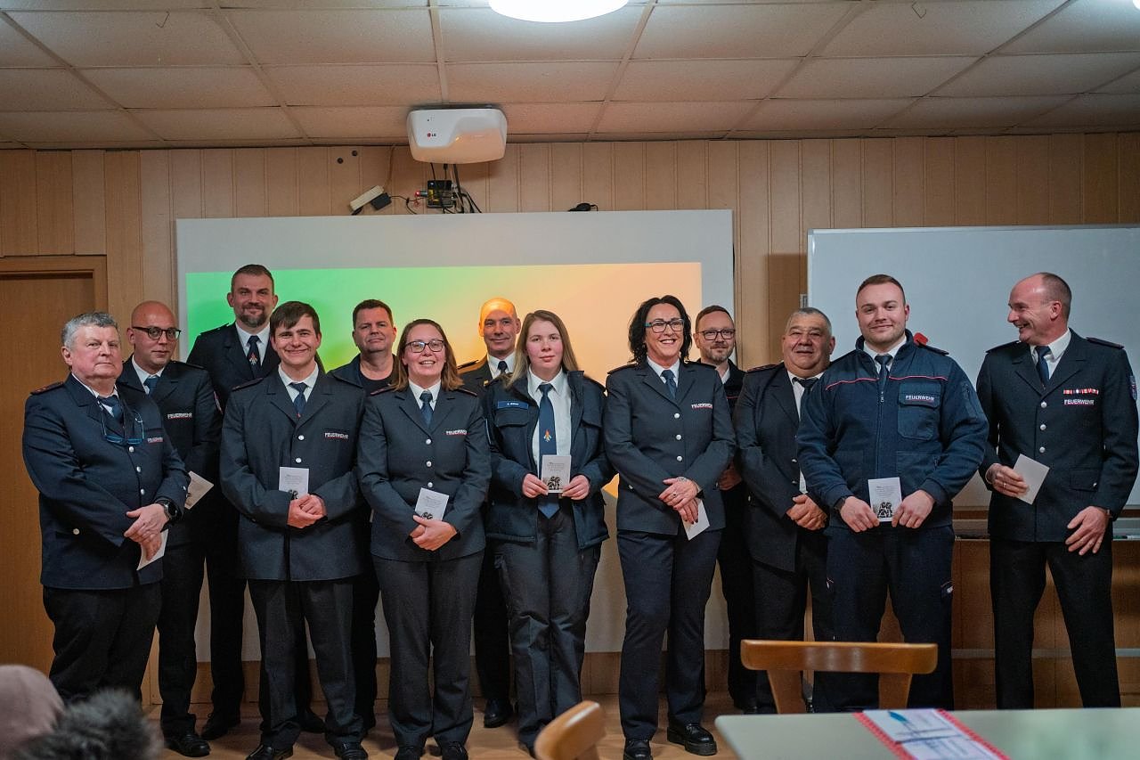 Auch aus der Nachwuchsarbeit wurde berichtet. Jugendwartin Julia Noffke-Engel informierte darüber, dass die Jugendfeuerwehr aktuell 16 Mitglieder zählte. In 45 Ausbildungsdiensten mit rund 70 Ausbildungsstunden vermittelten die Ausbilder Kenntnisse in Feuerwehrtechnik, Gerätekunde, Löscheinsatz und Erster Hilfe. Ergänzt wurde die Ausbildung durch Gemeinschaftsaktivitäten wie eine Baumpflanz Challenge, einen Blaulichtgottesdienst, einen Kinobesuch, die Weihnachtsfeier, die Aktion Friedenslicht sowie die Teilnahme am Weihnachtsmarkt. Der Feuerwehrverein unterstützte den Nachwuchs unter anderem mit neuen Rucksäcken und Mützen.