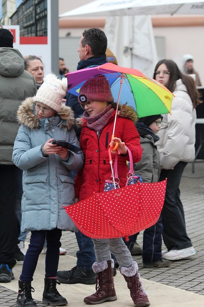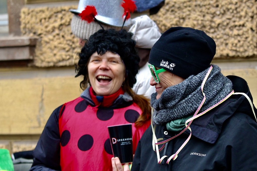 Ganz im Zeichen der Liebe, feiern die beiden Zuschauer den Karnevalsumzug in Bad Langensalza (Foto: Eva Maria Wiegand)