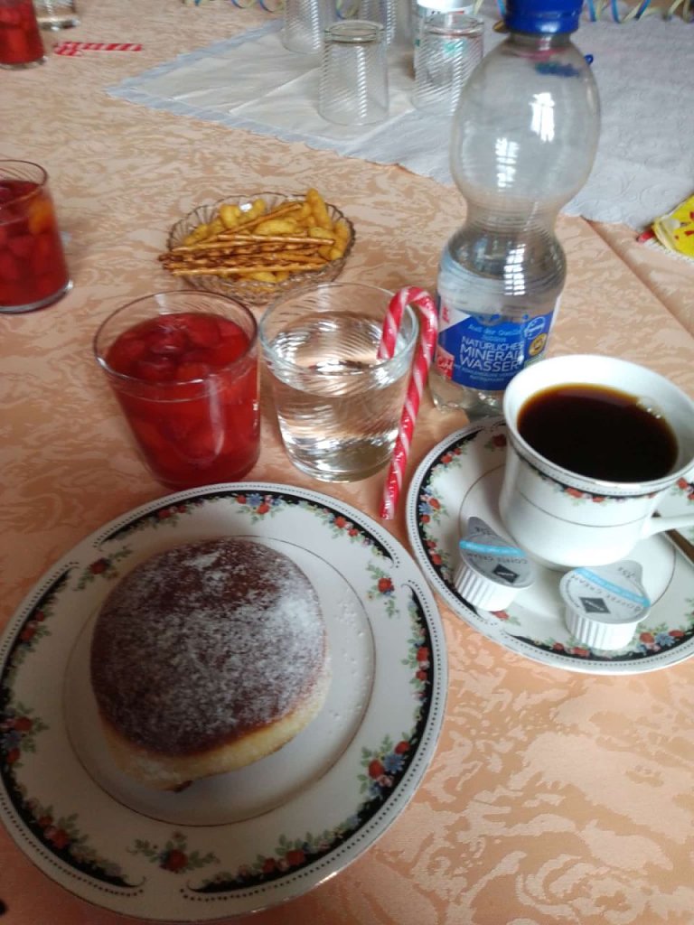 Bunter Tischschmuck, lustige Kostüme ließen gleich die richtige Stimmung aufkommen.Frau Elfi Reichhardt bewirtete uns mit leckerer Bowle, Kaffee und natürlich mit Pfannkuchen oder Berliner.