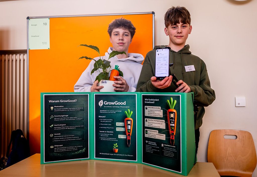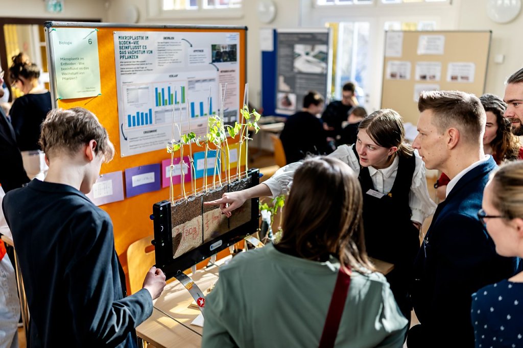Auch Tilda Müller und Liam Luca Weidensee, Siebtklässler des Schiller-Gymnasiums in Bleicherode, widmeten sich dem Thema Mikroplastik. Sie untersuchten, wie Kunststoffpartikel im Boden das Pflanzenwachstum beeinflussen, und konnten negative Effekte nachweisen. Auch die beiden konnten die Jury, bestehend aus Lehren und Hochschulpersonal, überzeugen.