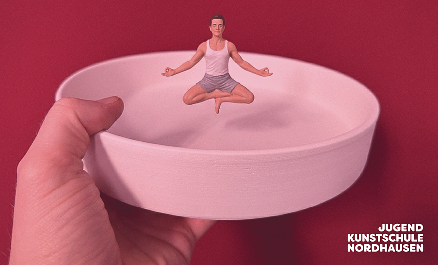 Die Teilnahme lohnt sich gleich doppelt. Wunderbare Keramikschalen warten darauf, gestaltet zu werden. Ob farbenfroh, verspielt oder minimalistisch – die Teilnehmenden sind vollkommen frei, sich auszuprobieren. Ihnen stehen die Mitarbeiterinnen der Jugendkunstschule mit künstlerischer Expertise und kreativen Anregungen zur Seite. Vorher allerdings begleitet unsere erfahrene Yoga-Lehrerin die Anwesenden durch ausgewählte und für alle geeignete Übungen, um mitgebrachte Verspannungen zu