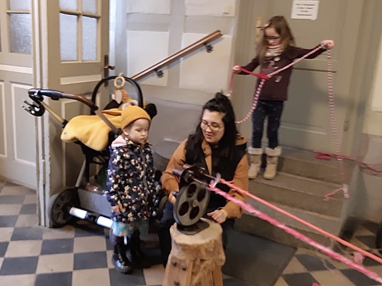 Am Freitag zum Aktionstag soll die alte Seilermaschine vor dem Pfarrhaus stehen, um dieses Handwerk kennenzulernen und zu entdecken. Die Kinder können nachdem sie ihre bunten Fäden ausgewählt und eingespannt haben an dieser historischen Maschine eine Kurbel entgegen dem Uhrzeigersinn drehen...