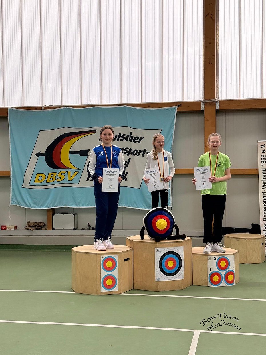 Am darauf folgenden Wochenende zog es unsere Bogenschützen nach Döbel zur Deutschen Meisterschaft für Bögen ohne Visier. Am Samstagvormittag gingen Lena Frodl und Anni Kraft an den Start. Für Lena Frodl war es die zweite Deutsche Meisterschaft in der Halle jedoch in einer neuen Altersklasse, während Anni Kraft ihre erste Deutsche Meisterschaft bestritt.