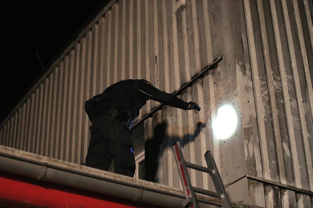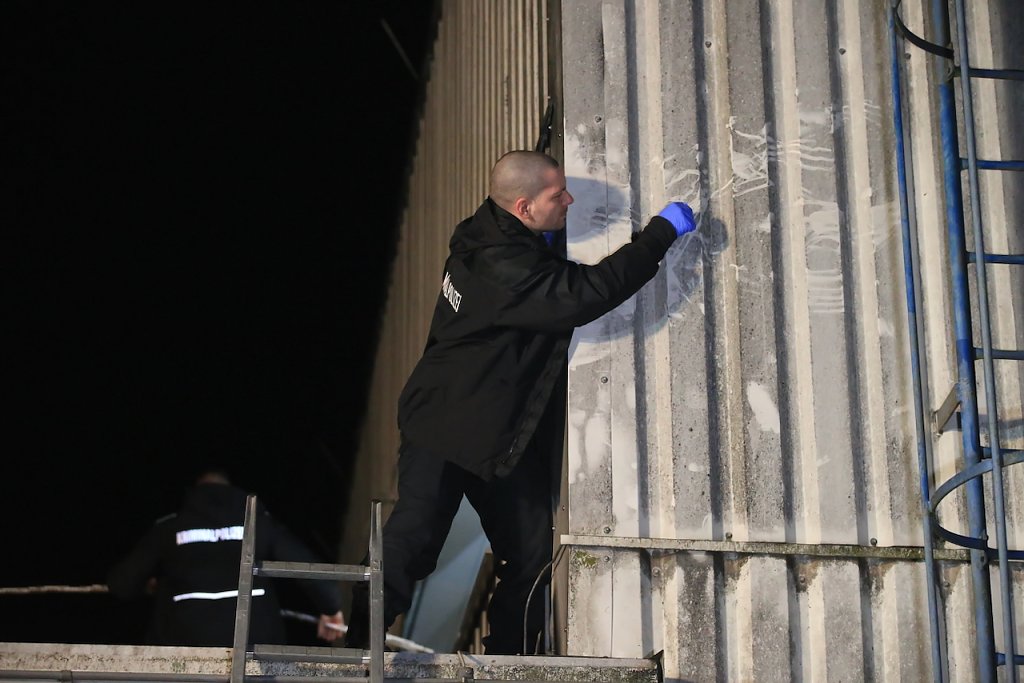 Ebenso kam ein Fährtenhund zum Einsatz. Dieser verfolgte eine Spur bis zur Bundesstraße 4, wo diese endete. Der Kriminaldauerdienst war vor Ort und sicherte Spuren. Ebenfalls wurde Videomaterial aus den Überwachungskameras gesichtet und ausgewertet.
