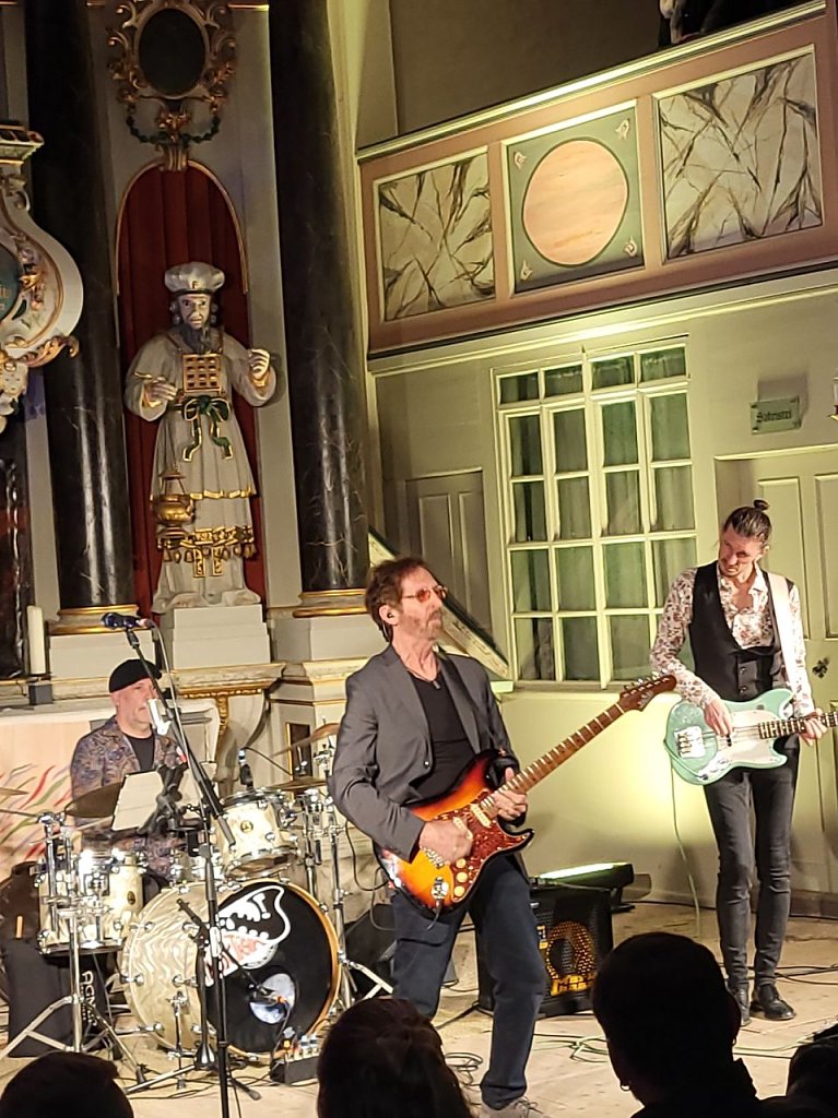 Als die ultimative ERIC CLAPTON Tribute Show werden die Konzerte des kanadischen Gitarristen Cliff Stevens angekündigt und der Bluesrocker mit britisch-schottischen Wurzeln hält, was die Werbung verspricht. Neu in der Show waren die Italiener Andrea am Bass und Pavlo am Schlagzeug, die beide aus Mailand in die Kurstadt eilten, um die altehrwürdige Konzertkirche zu rocken. Dort ließ sich ein erwartungsfrohes Publikum aus Langensalzaern, Gothaern und den umliegenden Orten nicht lange bitten und spendete frenetischen Beifall im ausverkauften Gotteshaus. Neben allen Welterfolgen von Mr. Slowhand Eric Clapton spielte Stevens auch wieder viel eigenen Blues Rock. Aus seinem neustem Album New Shade of Blue kamen schon die ersten Titel zu Gehör, die ebenfalls zu gefallen wussten. Gefallen hat es dem Ausnahmegitarristen auch wieder in der Rosenstadt, die er nun im Herbst 2027 zum dritten Streich mit einem Konzert besuchen möchte. Genaue Termine dafür werden derzeit mit der veranstaltenden Agentur Manthey Rocco Pera GmbH abgestimmt.
