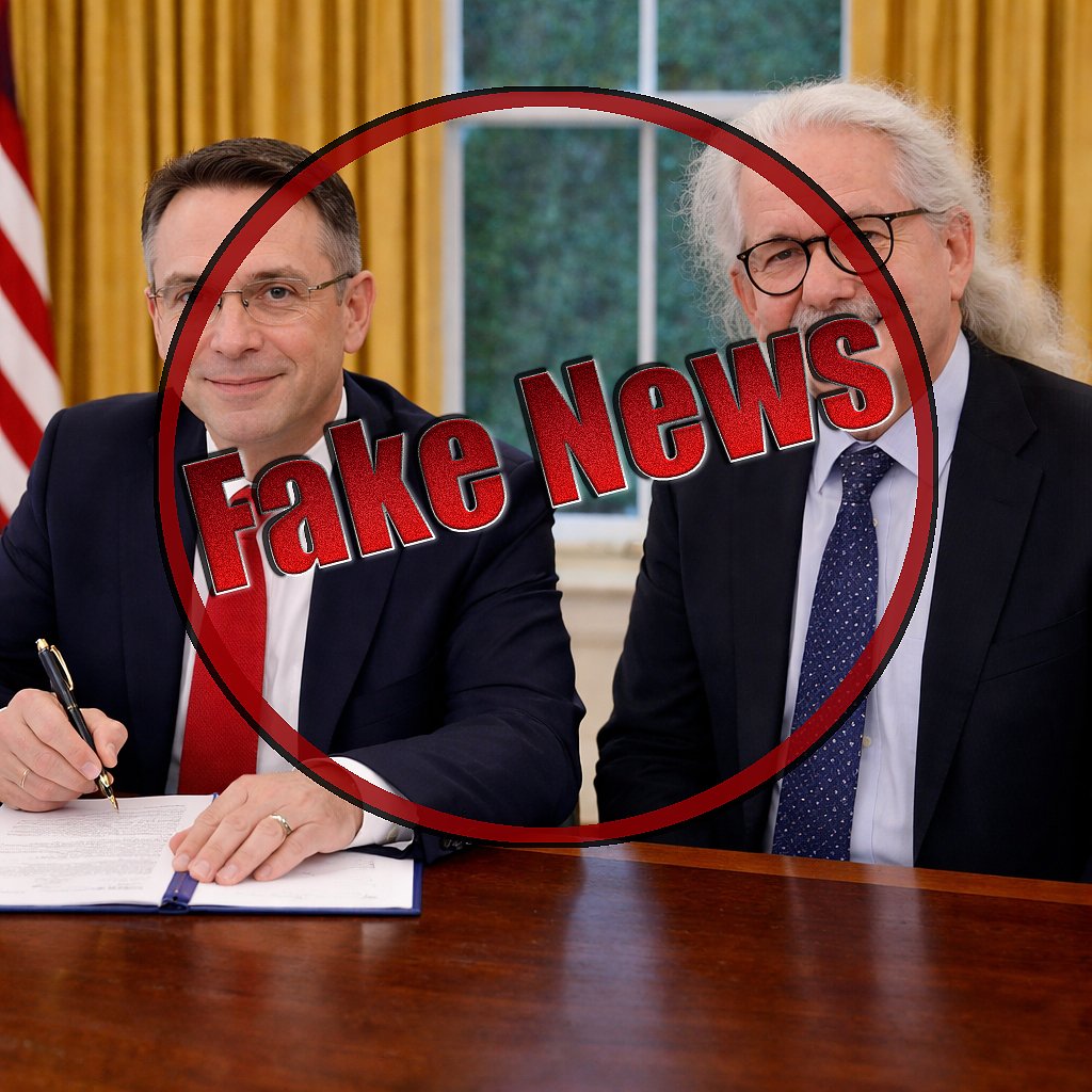 Für die Glaubwürdigkeit ist entscheidend: Bildmaterial. Peter-Stefan Greiner konnte der Kollege beim Frühlingsball in passsender Montur ablichten, den amerikanischen Investor vor der US-Flagge hat die KI gebaut. Bildunterschrift: Tyler Durden (CEO Apex Regional Media) und PSG (Herausgeber nnz) bei der Vertragsunterzeichnung, ein erstes i-Tüpfelchen und ein täuschend echt wirkendes Foto. Wer ganz genau hinschaut, sieht die Fehler in der Matrix - der Hintergrund erinnert frappierend an die täglichen Bilder aus dem "Oval Office" des Weißen Hauses und die KI verpasst Herrn Durden an jeder Hand einen Ehering, auch unter Amerikanern eher ungewöhnlich. Bis hierhin hat die KI aber dennoch schon viel geleistet, ohne dabei tatsächliche Realität abzubilden. Jetzt wollten wir wissen, wie weit man noch gehen kann.Eine Firma entsteht in Minuten