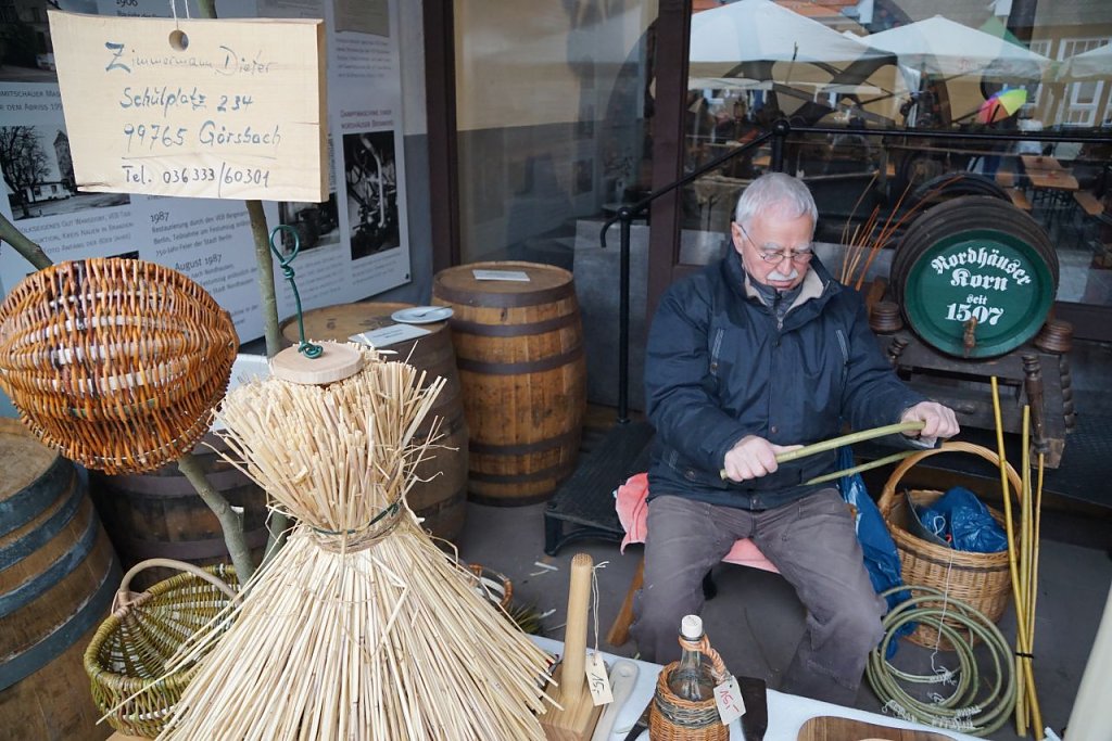 Zwei Grad und Nieselregen: Nicht das beste Wetter für einen Ostermarkt unter freiem Himmel. Thomas Müller, Chef der Nordhäuser Traditionsbrennerei, sieht es gelassen. Wir hatten schon des Öfteren schlechtes Wetter zum Ostermarkt, aber die Leute kommen trotzdem. Und in der Tat: Auf dem Hof der alten Kornbrennerei herrschte ein ständiges Kommen und Gehen, im Laden gab es sogar Gedränge. Wir hatten gerade eine Führung mit 50 Leuten. Heute Morgen auch schon. Ich bin ganz zufrieden, sagt Müller.