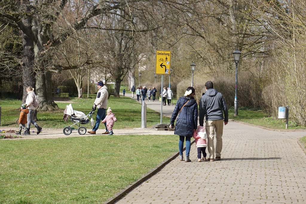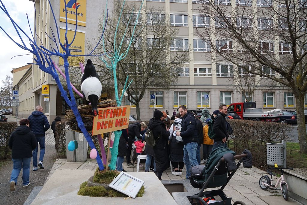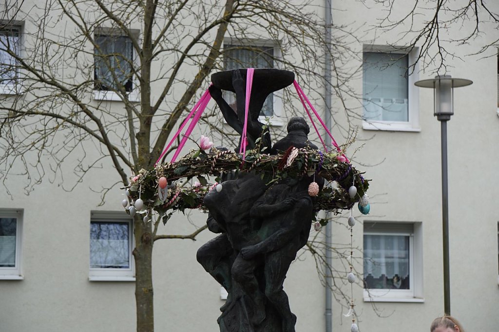 Auf dem Marktplatz herrschte beim Frühlingsmarkt dichtes Gedränge: Besucher schlenderten zwischen den Ständen und Kinder bemalten begeistert einen großen Osterhasen.
