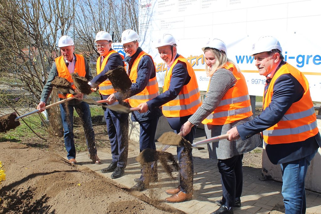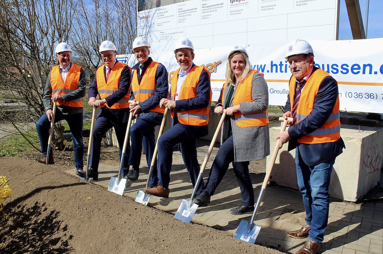 Am Spatenstich für die neue Zweifeldsporthalle in Herbsleben nahmen neben Ministerpräsident Mario Voigt auch Christian Hirte (CDU) Parlamentarischer Staatssekretär beim Bundesminister für Verkehr; Landrat des Unstrut-Hainich-Kreises Thomas Ahke und Jane Croll (CDU) teil.