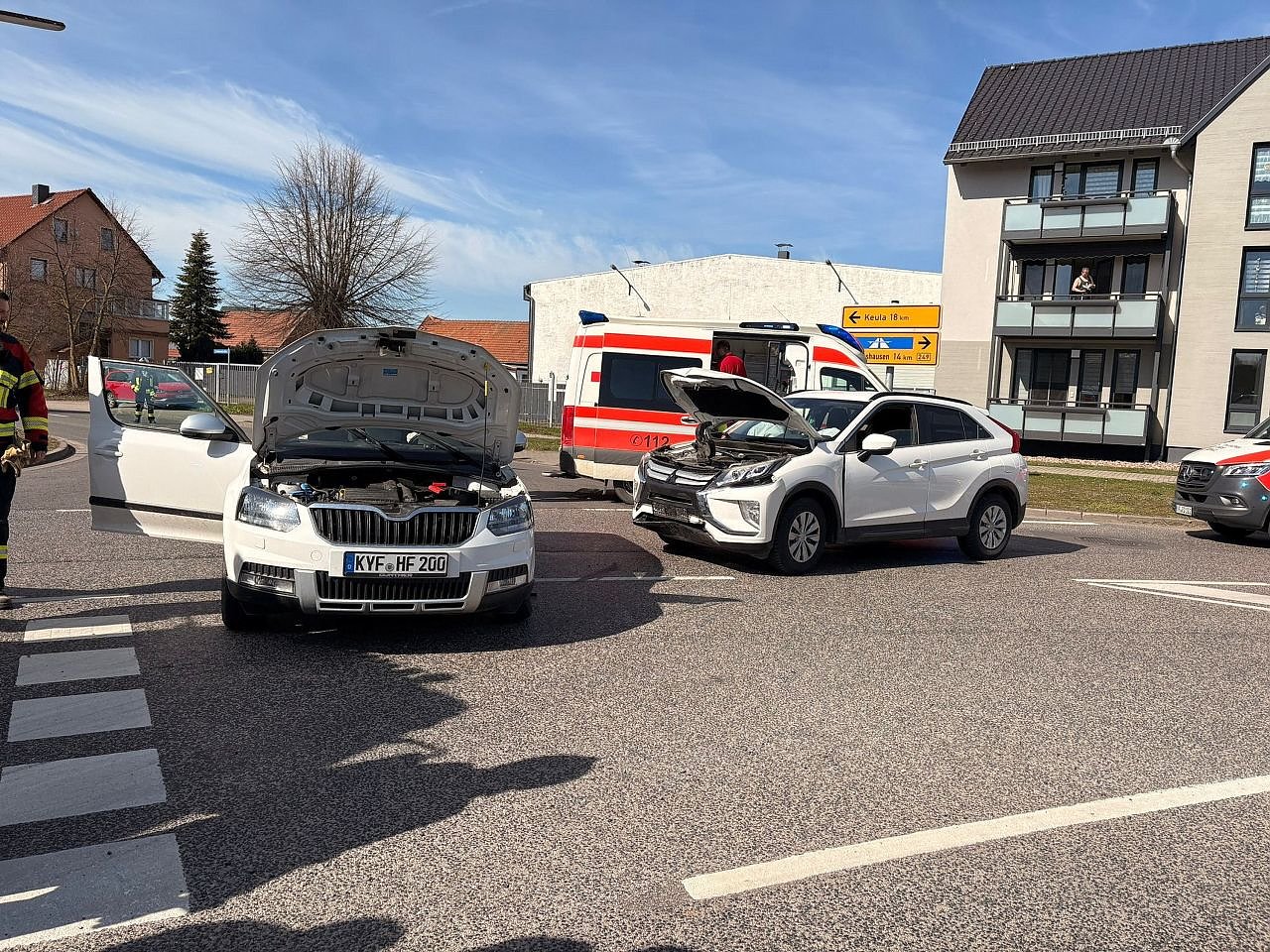 Dabei übersah er einen vorfahrtsberechtigten Mitsubishi, welcher sich auf der Sondershäuser Straße in Fahrtrichtung Kreisverkehr befand. Der 42-jährige Fahrer des Mitsubishis konnte eine Kollision nicht verhindern und prallte in die Fahrerseite des Skodas.