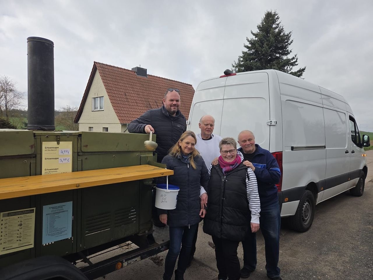 Die Aktion hat in den Ortsteilen längst Tradition: Bereits seit 2008 organisiert ein Team um Werthers Bürgermeister Manfred Handke den Straßenverkauf aus der Feldküche. Angeboten wird frisch zubereitete Erbsensuppe, wahlweise mit oder ohne Bockwurst.
