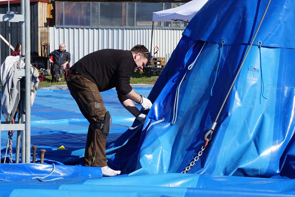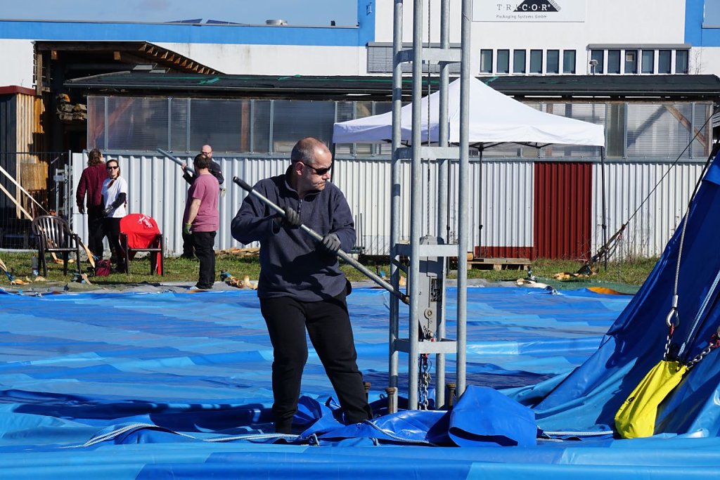 Der neue Standort bringt allerdings auch Herausforderungen mit sich. Bereits beim Aufbau zeigte sich der Boden als extrem verdichtet: Insgesamt 77 massive Erdnägel mussten in die harte Erde getrieben werden. Dafür haben wir den ganzen Tag gebraucht und zusätzliche Helfer benötigt, berichtet Böttcher.