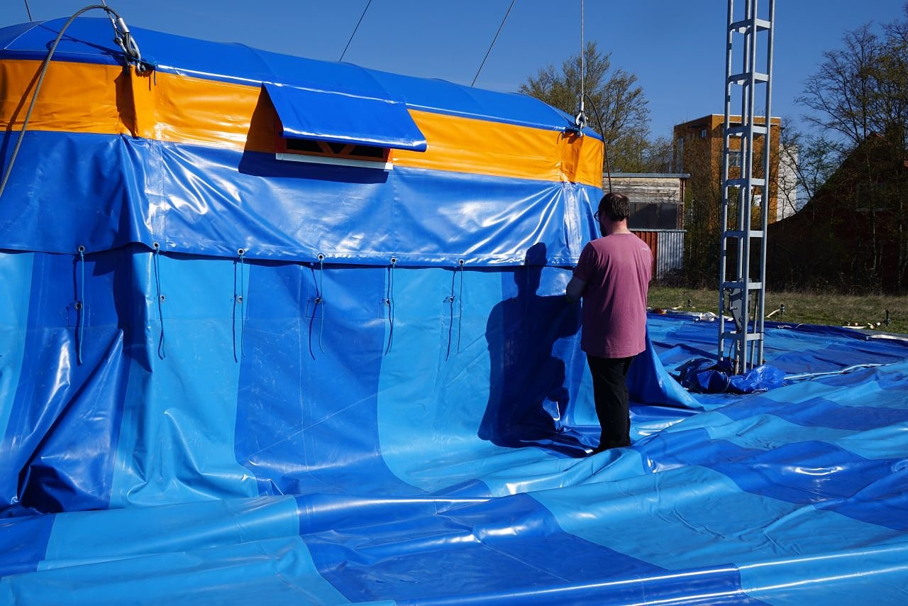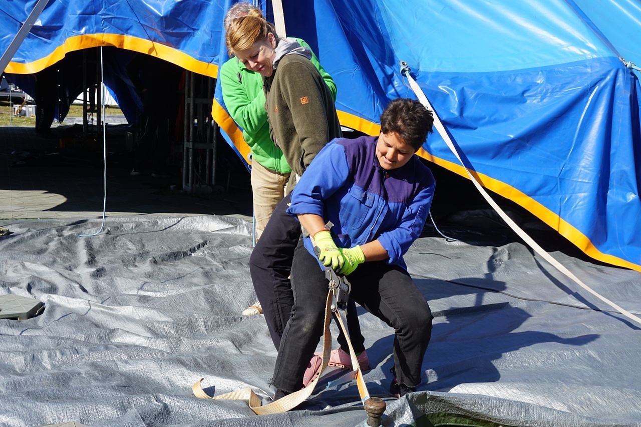 Gerade für die auftretenden Künstler ist das eine Herausforderung: Sie befestigen ihre Requisiten und Geräte selbst unter der Zeltkuppel. Die neuen Lüftungsmöglichkeiten sollen die Arbeit unter diesen Bedingungen erleichtern.