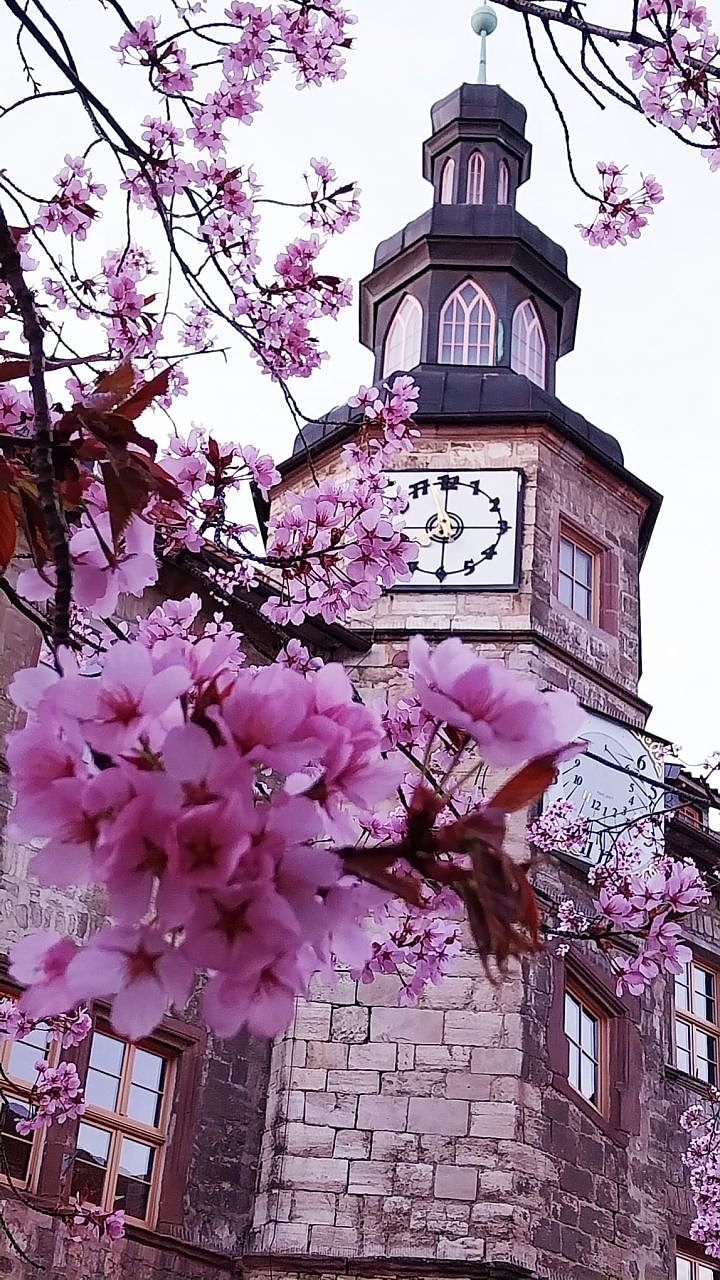 meine Momentaufnahme, Kirschblütenzauber in Nordhausen vorm Rathaus.