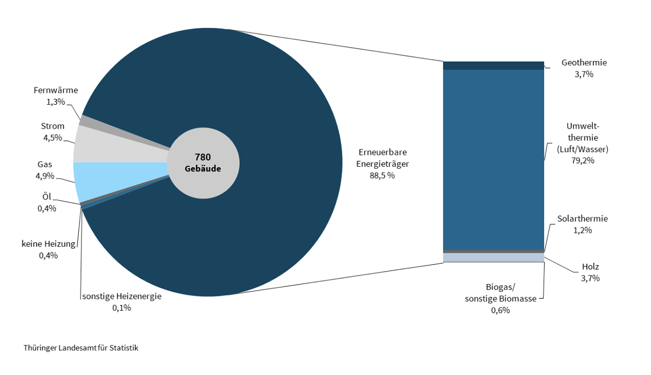 Nach vorliegenden Jahresergebnissen der Baugenehmigungsstatistik 2025 werden zur primären Beheizung der 780 neu geplanten Wohngebäude in Thüringen nach Fertigstellung zu 88,5 Prozent regenerative Energien genutzt. Gegenüber dem Jahr zuvor war das nach Mitteilung des Thüringer Landesamtes für Statistik eine Zunahme von 1,1 Prozent...