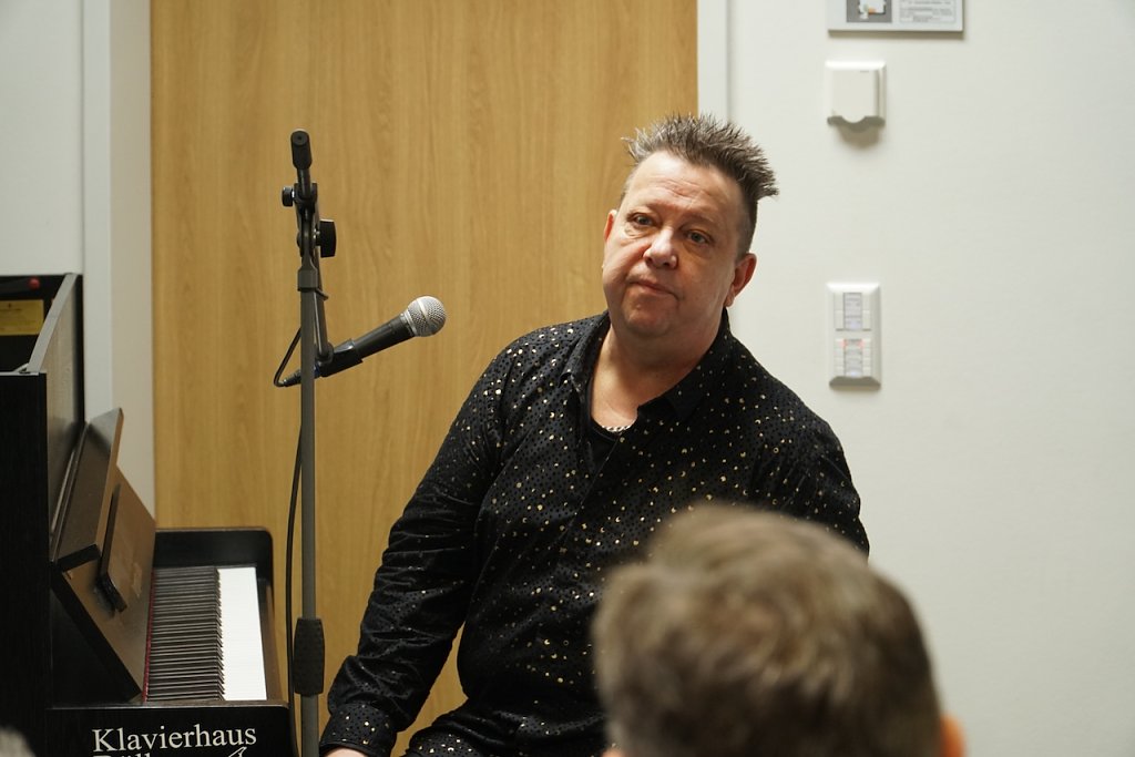 Noch deutlicher sagt es der, der heute für die musikalische Untermalung sorgte: Sebastian Krumbiegel - Sänger, Autor und seit Jahren bekennender Antifaschist. Demokratie und Antifaschismus, sagt Krumbiegel, im Sinne des Wortes also gegen den Faschismus sein, wurde ihm von Eltern und Großeltern in die Wiege gelegt. Die Zeichen des Wahnsinns, von dem seine Oma dem 15jährigen unter Tränen berichtete, könne man auch heute wieder sehen und der Korridor vom Konservativem hin zum Reaktionären werde häufig viel zu schmal, sagt Krumbiegel. Mit den Worten geht es los, erst in den Talkshows und mitunter auch schon in den Parlamenten, nicht nur in Deutschland und Europa, sagt der Sänger und bittet darum, kein Blatt vor den Mund zu nehmen und die zu benennen, die die Demokratie mit Füßen treten wollen.