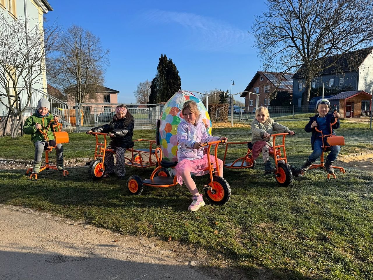 Die neuen Fahrzeuge und Bagger bieten nicht nur jede Menge Spaß, sondern fördern auch Bewegung, Geschicklichkeit und das gemeinsame Spielen im Freien. Für die Kinder der Kita Sonnenschein ist das Ostergeschenk somit ein voller Erfolg.