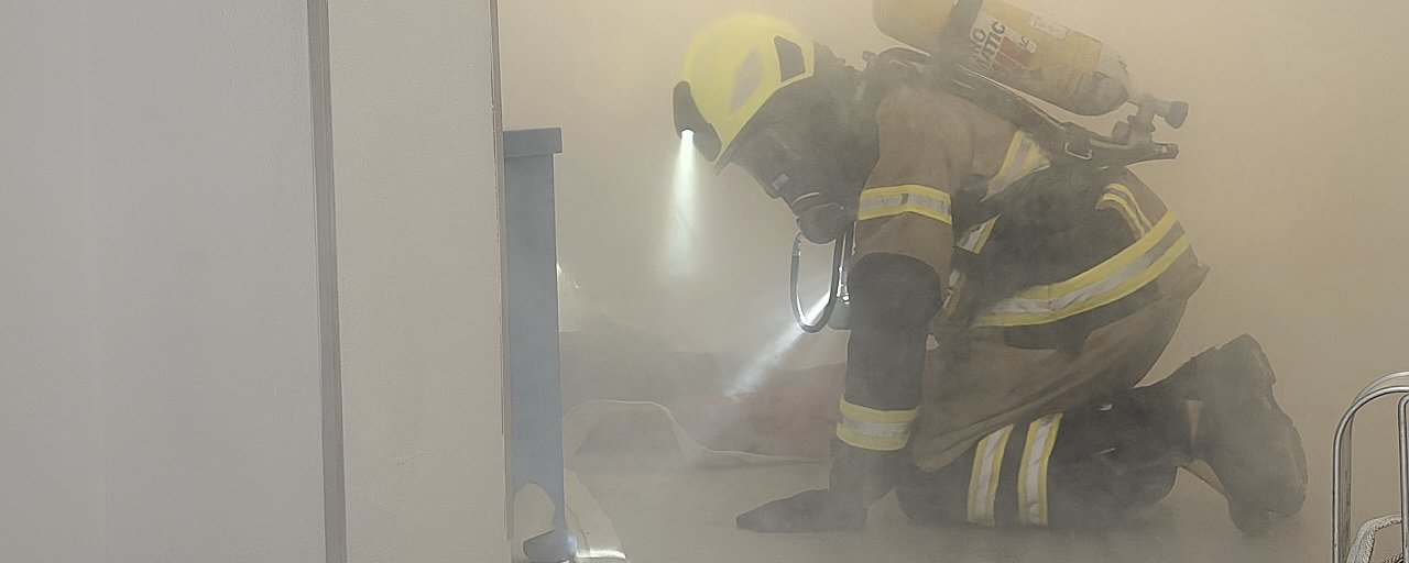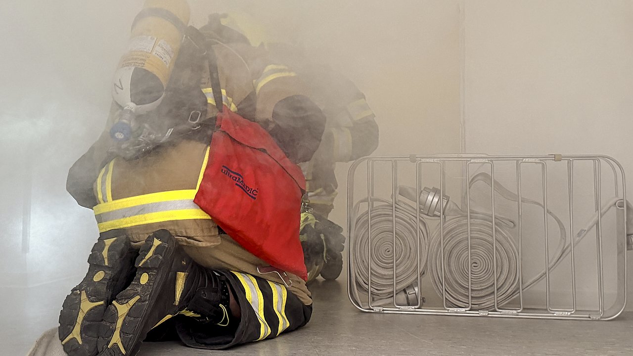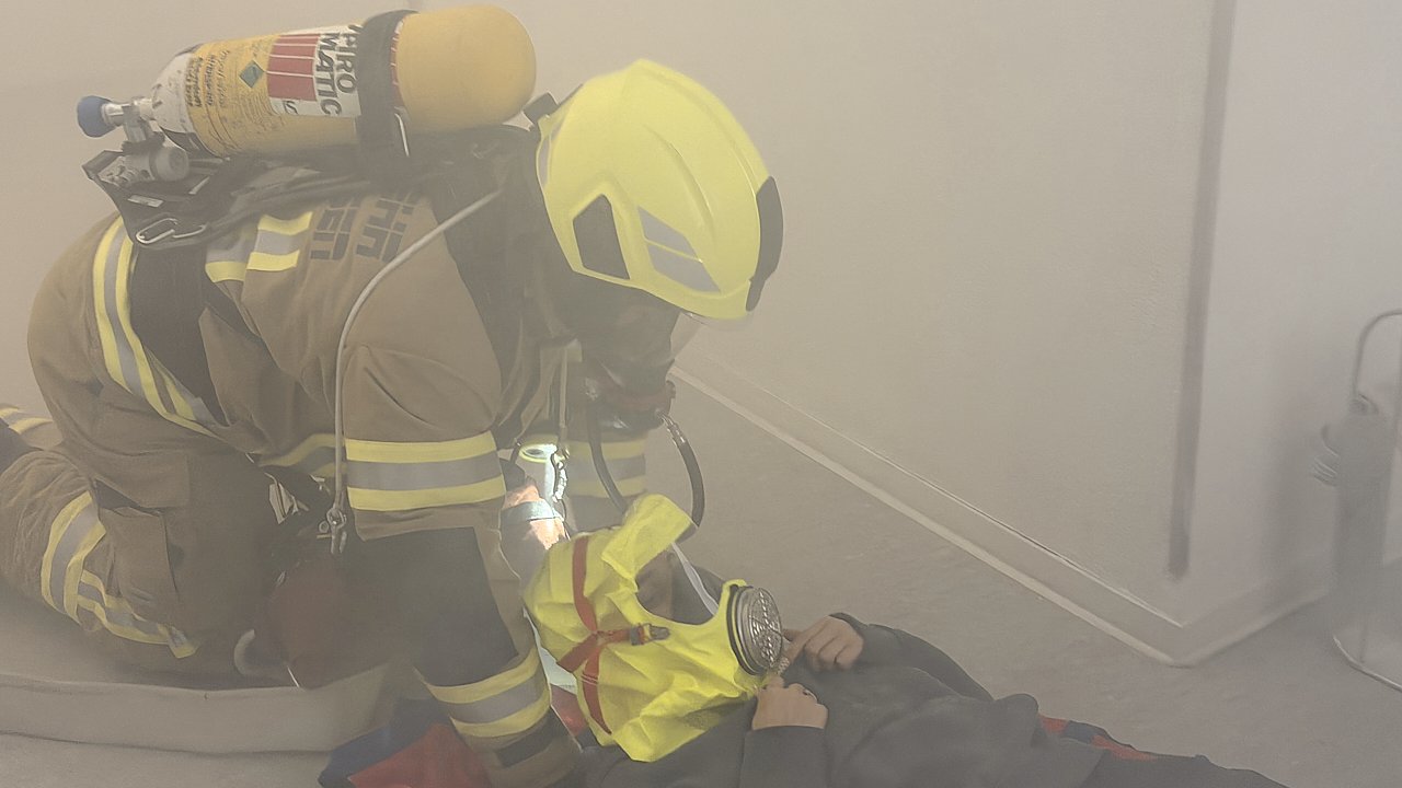 Für die sechs eingesetzten Kameraden war es keine leichte Aufgabe: Neun Zimmer mussten in einem ihnen völlig unbekannten Gebäude systematisch abgesucht, mögliche eingeschlossene Personen gefunden und gerettet werden. Der Innenangriff mit Menschenrettung über das Treppenhaus stand dabei im Mittelpunkt - ebenso wie das Erproben der Belüftung mithilfe eines Dampfgeräts.
