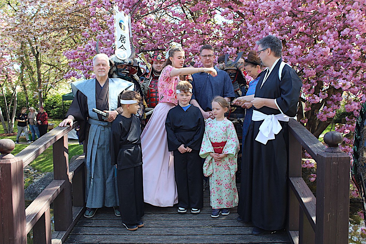 Rosenkönigin Maxima krönt Kirschblütenprinzessin Tilda. Links neben ihr der neue Samurai Nils. (Foto: oas)