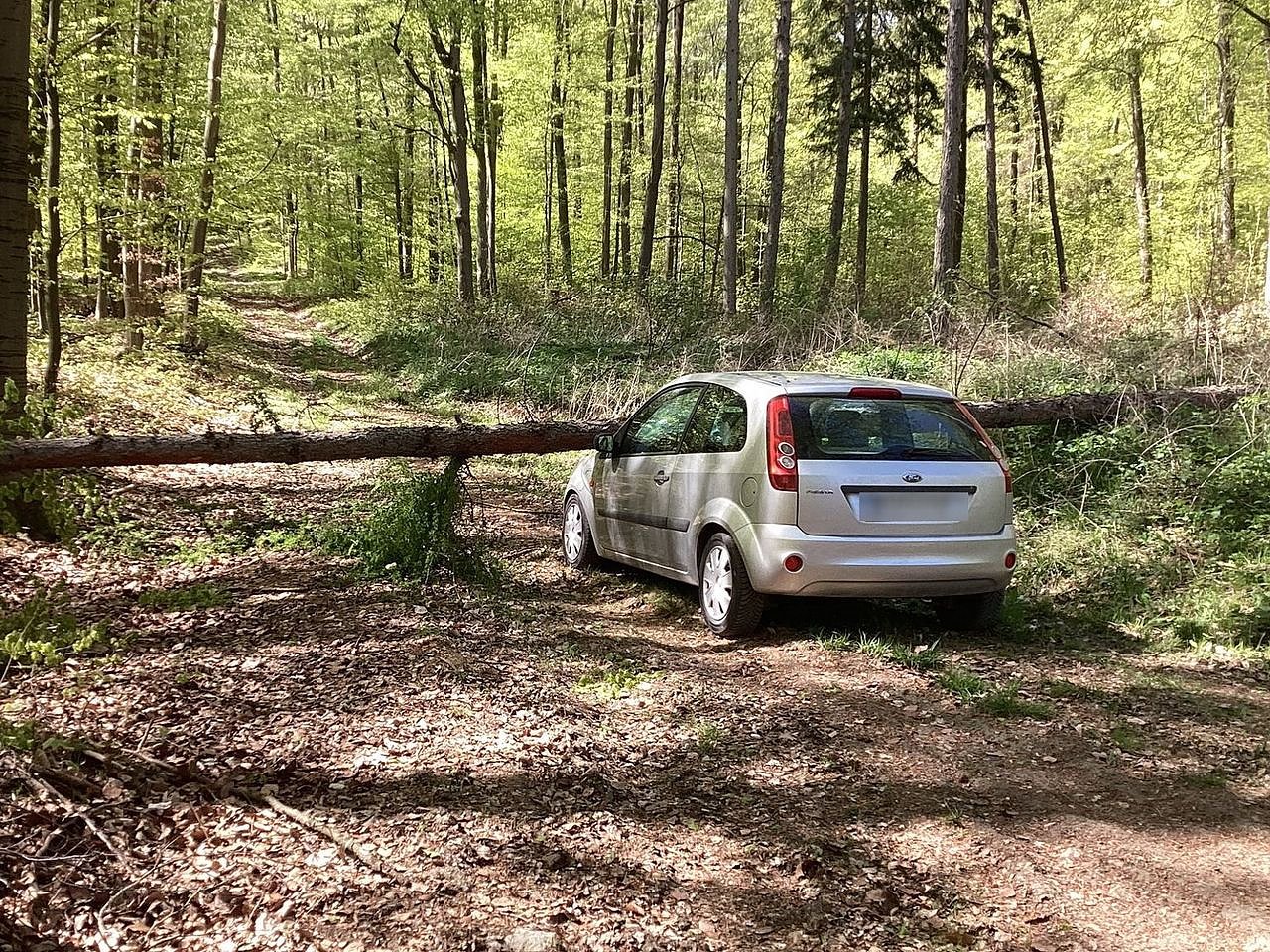 Als der Mann nachschaute, musste er feststellen, dass ein Baum auf sein Auto gestürzt war. Am Fahrzeug entstand ein wirtschaftlicher Totalschaden. Verletzt wurde niemand.