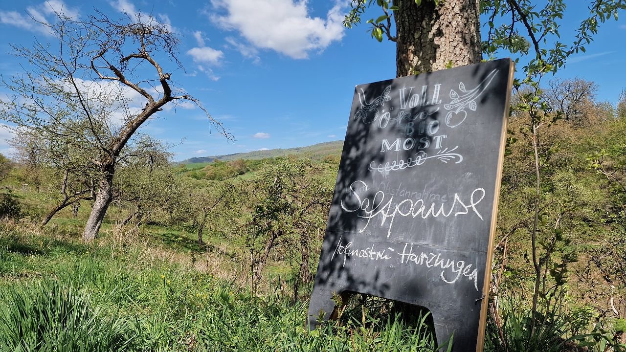 Ganz so entspannt wie gestern zum internationalen Tag der Streuobstwiese, mit geführten Wanderungen zur Wiese, Picknick im Sonnenschein und viel Wissenswertem rund um das Biotop unter Bäumen, geht es denn auch für Ulm nur selten zu, als Obstbauer hat man fast das ganze Jahr über zu tun, die Arbeit ist körperlich fordernd, vieles wird von Hand gemacht, erzählt er. Der Mühen Lohn ist der Ertrag, mit dem Verkauf von Schüttel- und Tafelobst verdient Ulm auch etwas Geld. Wirtschaftlicher wäre freilich ein Feld mit Mais oder Raps oder eine auf Profit getrimmte Plantage. Doch Ulm liebt seine Wiesen wie sie sind und damit ist er nicht allein - nicht beim Streuobsttag und auch nicht, wenn ernsthaft angepackt werden muss. Der Landschaftspflegeverband Südharz/Kyffhäuser hilft gerne und bereitwillig, der Naturpark Südharz, die Hofmosterei aus Harzungen, die Interessengemeinschaft Streuobstwiese, Familie, Freunde und manch andere helfende Hand packt auch gerne mit an. Rund fünf Tonnen Obst erntet man so in einem guten Jahr.