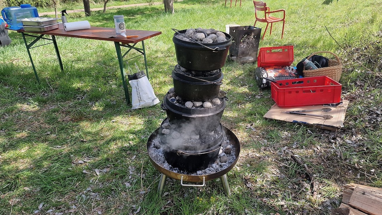 Wenn ich hier bin, lebe ich privilegiert - mit einem knappen Satz fasst Gerd Ulm zusammen, was ihm sein Streuobstwiesen bedeuten und wenn man den Blick kurz schweifen lässt, kann man kaum anders, als zuzustimmen. Die Birnen stehen in voller Blüte, der Wind geht leicht, die Sonne scheint, über dem Feuer kocht das Mittagessen (es wird Lamm geben) auf dem Tisch steht Apfelsaft - so lässt es sich aushalten.