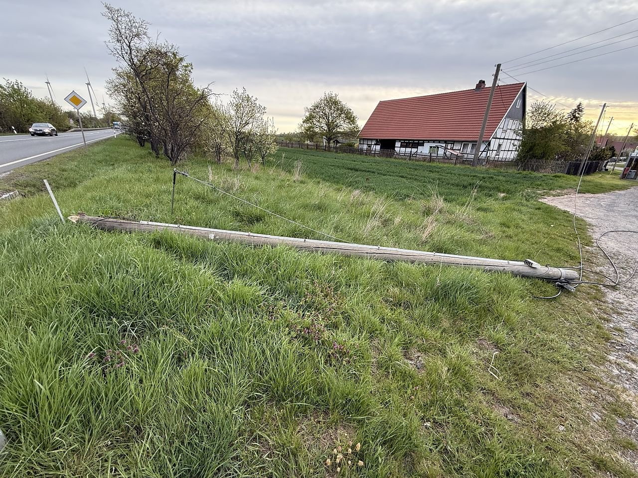 Nach ersten Erkenntnissen kollidierte Montagnacht zwischen 23:00 und 23:30 Uhr ein LKW beim Wenden/Rangieren mit dem Telefonmasten, welcher daraufhin abbrach. Der Verursacher verließ pflichtwidrig die Unfallstelle. Der Schaden liegt nach ersten Schätzungen im unteren fünfstelligen Bereich.