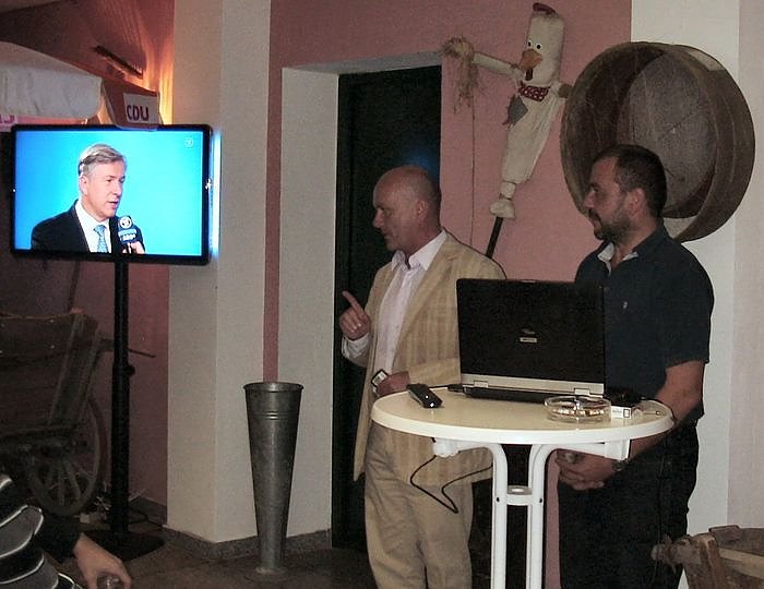 Als die 18-Uhr-Prognosen über den Bildschirm flimmerten, war das Lachen noch verhalten in den Gesichtern der CDU-Wahlkämpfer und ihrer Helfer im Nordhäuser Scheunenhof in der Paulaner Schenke. Für die nnz war Jürgen Wiethoff dabei...