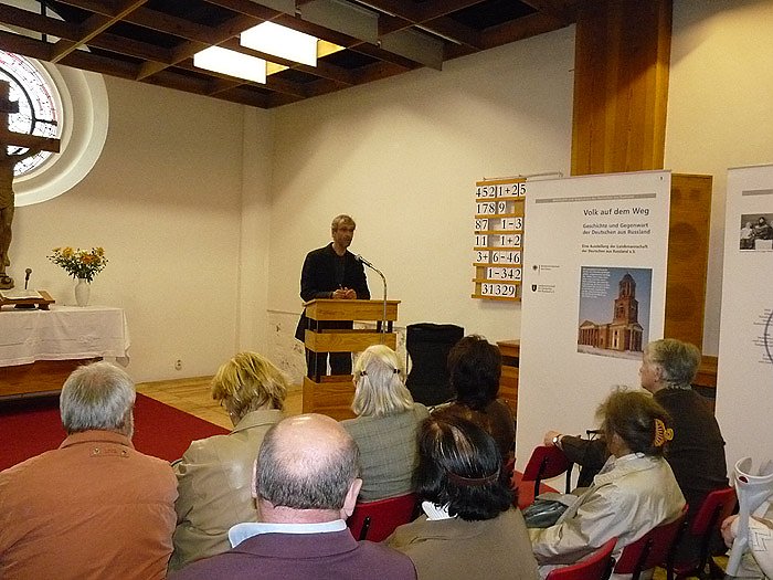 In der Sondershäuser Trinitatiskirche wurde um 17:00 Uhr die Ausstellung Volk auf dem Weg im zwanglosen Rahmen eröffnet. Auf 15 Schautafeln wird anschaulich Geschichte und Gegenwart der Deutschen aus Russland dargestellt. Russlanddeutsche, die an das Schicksal der Deportation im Stalinistischen Russland erinnern, werden zu Wort kommen.