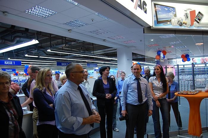 nnz-City Scout: Bedankt Eröffnungsfeier für den neuen Markt. Herfag sagte Danke an seine Mitarbeiter für den erfolgreichen Eröffnungstag. Und natürlich auch für die Mitarbeit beim Umbau.