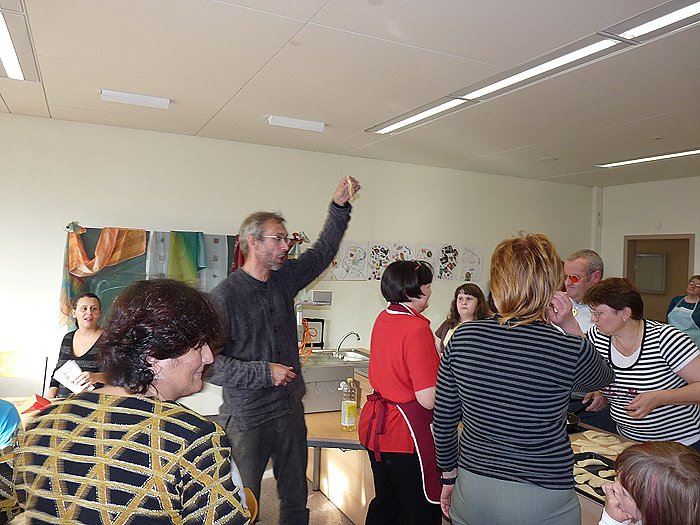 Thomas Weinrich von der Kreisdiakoniestelle Sondershausen wartete allerdings mit der Begrüßung bis das Essen, Entschuldigung die Essen, fertig waren. Als er hier zur Demonstration eine Teigtasche in die Höhe hob, hatte er so seine Schwierigkeiten mit dem Aussprechen, und kn mit dem Aufschreiben. Aber macht nichts, man konnte fragen, wenn man wollte, und jeder bestätigte, dass es schmeckte. Einige Fotos in der Bildergalerie zeigen doch einige Esser mit dicken Backen, ein Zeichen, dass es schmeckt.