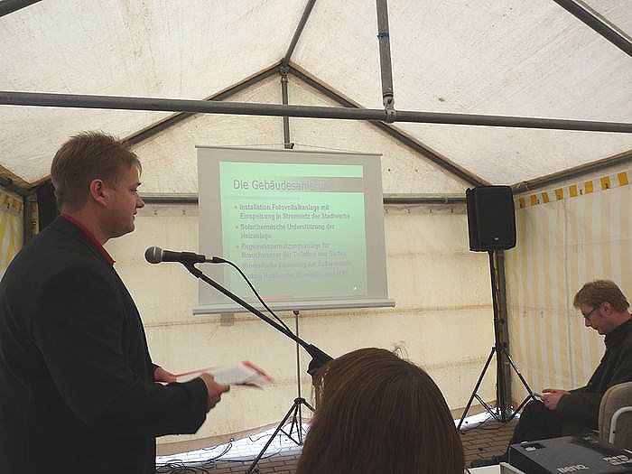 Aber auch die Kindertagesstätte soll ökologisch ausgerichtet werden. So bestehen Vorstellungen eine Photovoltaikanlage zu bauen, und auch das Dach thermisch zu isolieren, wenn es Mittel dazu gibt. Bisher reichten die Mittel aus dem Konjunkturpaket II nur für neue Fenster. Und auch an den demografischen Wandel ist bei dem Projekt schon gedacht worden. Wenn die Zahl der Kinder zurückgeht, sollte der Kindergarten mit einem Gemeindezentrum kombiniert werden.