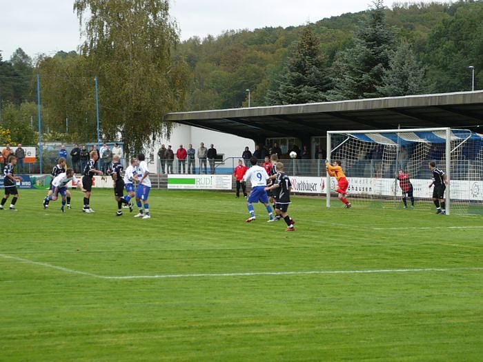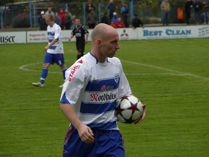 Gefährlich wurde es noch einmal kurz vor der Halbzeitpause. Daniel Wiegleb hält Mathias Seidel fest, dessen scharfen Freistoß konnte Lars Greschke abwehren. Auch zwei weitere Freistoßversuche waren nicht von Erfolg gekrönt. Mit der Nordhäuser Führung ging es in die Kabinen.