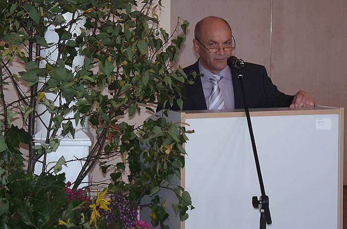 Egon Strödter eröffnete die Feierlichkeit und begrüßte zahlreiche Gäste, ob ehemaliger Schüler, ehemalige und aktuelle Lehrer, Eltern und auch das ehemalige langjährige Hausmeisterehepaar, die Familie Franz..