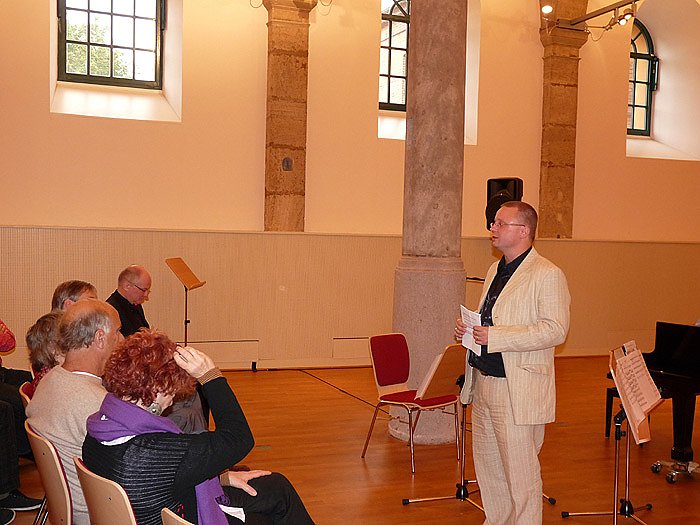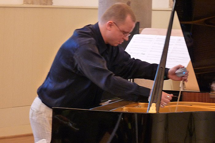 Interessant die Technik des Spiels am Klavier von Johannes K. Hildebrandt, das man auch nicht alltäglich in Konzerten sieht. Wie Hildebrand bei der Begrüßung informierte, ist dieser Wettbwerb mit einem Workshop verbunden, der auch für Nichtteilnehmer am Wettbewerb offen war. Mit dabei so u.a. Kerstin Frömmter aus Großfurra.