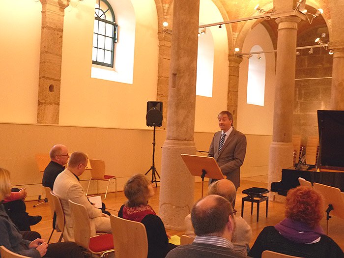 In seinem Grußwort sagte Dr. Helge Wittmann (Foto oben), dass es berechtigte Hoffnungen gibt, dass sich dieser Wettbewerb weiterentwickelt. Solch einen Nachswuchswettbewerb gibt es nicht in allen Bundesländern. Jugend komponiert ist ein Projekt des Landesmusikrates Thüringen und der Sparkassen-Kulturstiftung Hessen-Thüringen, gefördert durch das Thüringer Kultusministerium.