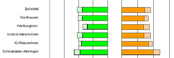 Die höchsten Rückgänge bei den Anmeldungen wurden in der Stadt Suhl (- 12,1 Prozent), im Landkreis Altenburger Land (- 7,7 Prozent) sowie in der Stadt Eisenach (- 6,5 Prozent) festgestellt.