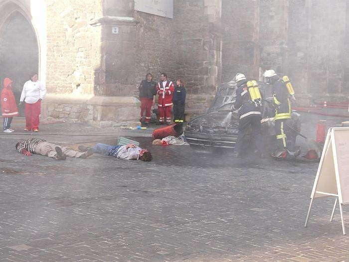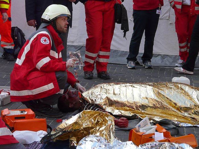 Insgesamt waren bei den Wettbewerben in Halle / Saale die 350 besten Helfer des Roten Kreuzes aus ganz Deutschland dabei, um an zwölf sehr echt nachgestellten Stationen in der Fußgängerzone der Stadt ihr Können nachzuweisen. Die Simulation reichte vom Verkehrsunfall über Verletzte bei einer Schlägerei bis hin zu einer Explosion.