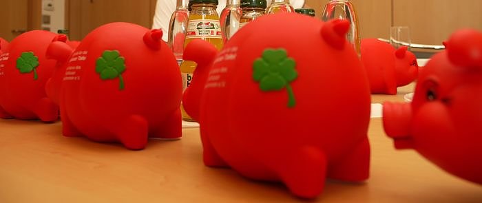 Um möglichst dicke und runde Schweine zu erhalten, müssen die Paarhufer gemästet werden. So auch die roten Spendenschweine des Nordhäuser Gewerbevereins zugunsten der Nordhäuser Tafel – allerdings erfolgt hier die Fütterung mit Münzen.