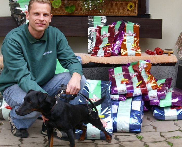 Aufgrund einer Sortimentsumstellung im Raiffeisenmarkt Bleicherode überbrachte uns Sebastian König über 20 Sack Hundefutter. Da staunten wir nicht schlecht, als er sein Fahrzeug ablud. Für alle tierischen Altersklassen war etwas dabei...